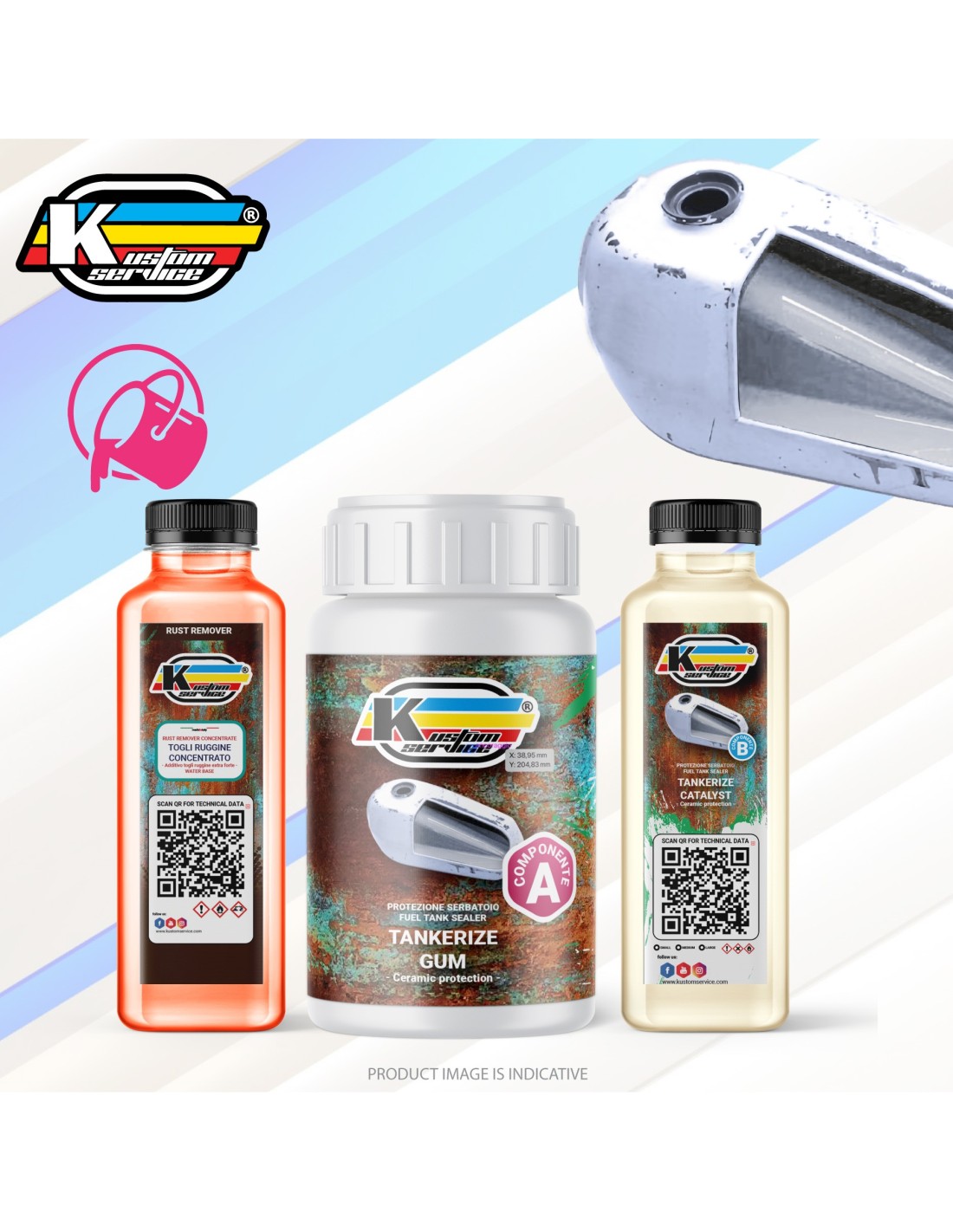 Kit trattamento gum ceramico elastico riparazione rigenerazione anti ruggine per serbatoio moto, auto, vespa, lambretta, barche.