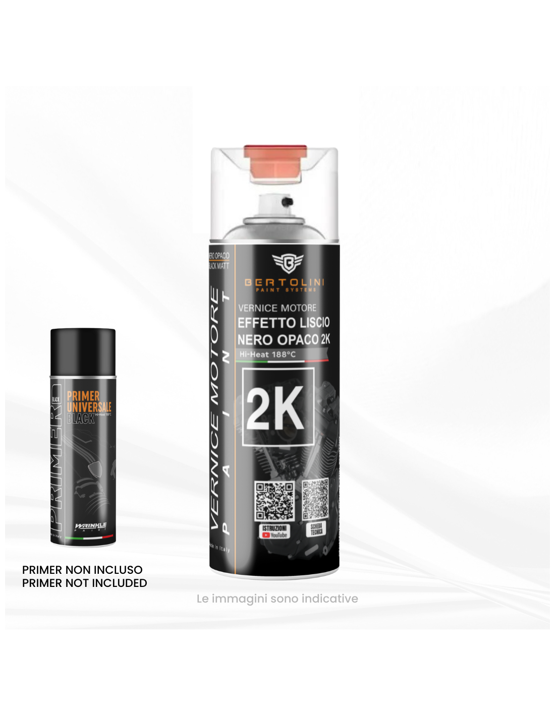 VERNICE MOTORE SPRAY 2K PROFESSIONALE NERO OPACO ALTA TEMPERATURA RESISTENTE ALLA BENZINA