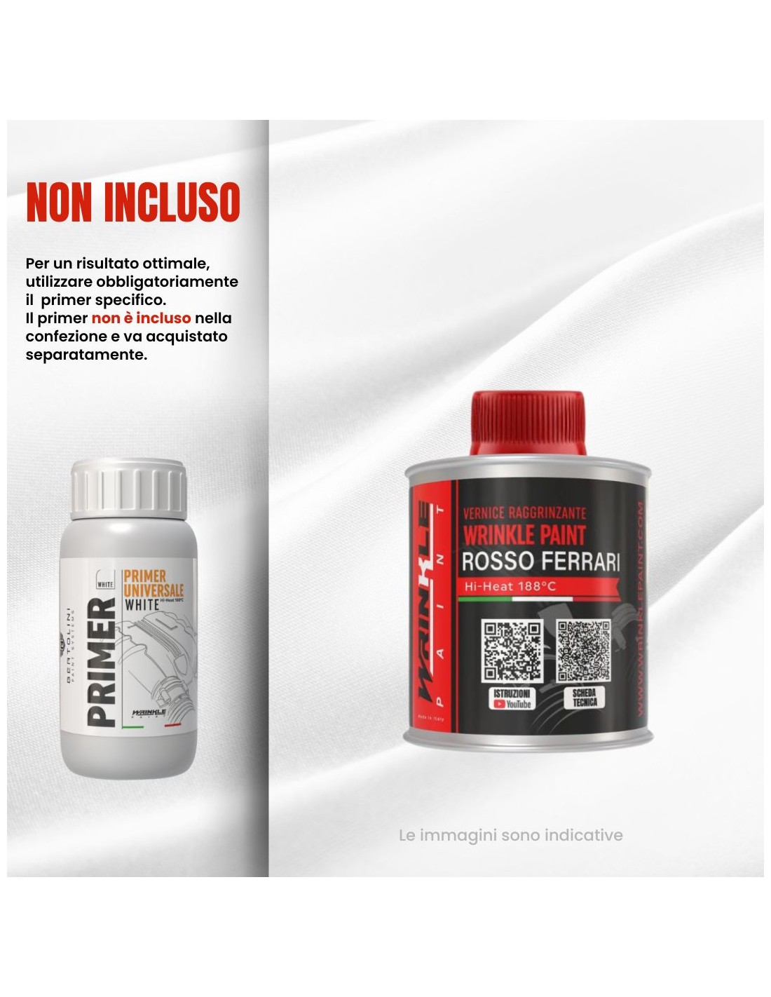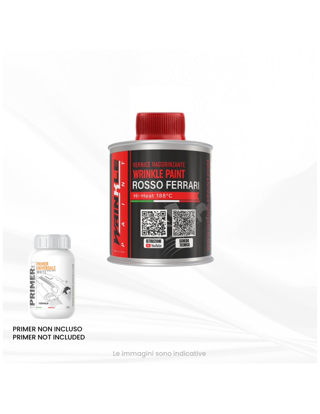 La vernice raggrinzante Rossa, Gialla, Grigio devono essere applicate OBBLIGATORIAMENTE sul Primer Wrinkle Bianco